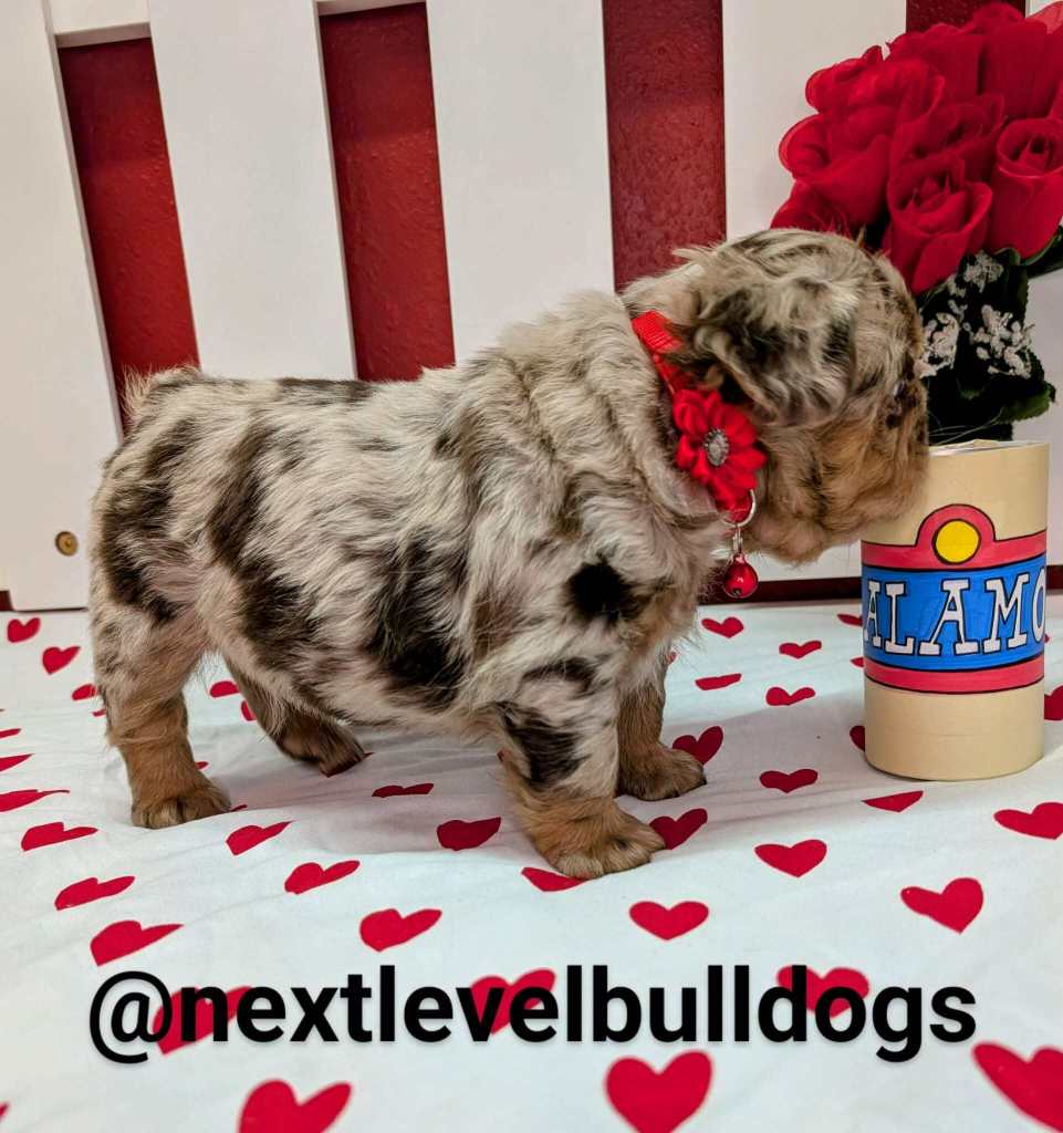 All babies passed their health checkup. DNA is currently pending on all pups. Born November 24th, 2025. Bill, a Rojo and tan merle big rope fluffy French Bulldog is priced at 8500. Dale, A rojo and tan merle big rope fluffy French Bulldog is priced at $13,000. Boomhauer, A rojo and tan merle fluffy big rope French Bulldog is priced at $8,000 for a co-own home. Luanne, a Solid black fluffy big rope French Bulldog is priced at $8,500.