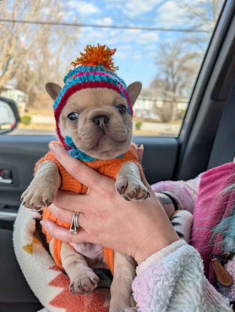 Roronoa Zoro is Mustards first son and hes beautiful! This boy will be ready to go 12-24-25. Perfect just in time for christmas! This boy is extremely spoiled and loves being carried around and giving kisses to whoever is holding him. His parents are Next Level’s Mustard and Next Level’s Flower. They are both small 17-23 lbs and we expect him to be similarly small. His price is $4,000.00 for a pet home or $5,000.00 for full rights. He is Urajiro cocoa fawn, will carry blue, fluffy, and possibly testable chocolate. Send us a message by phone or one of our social media platforms for any questions!